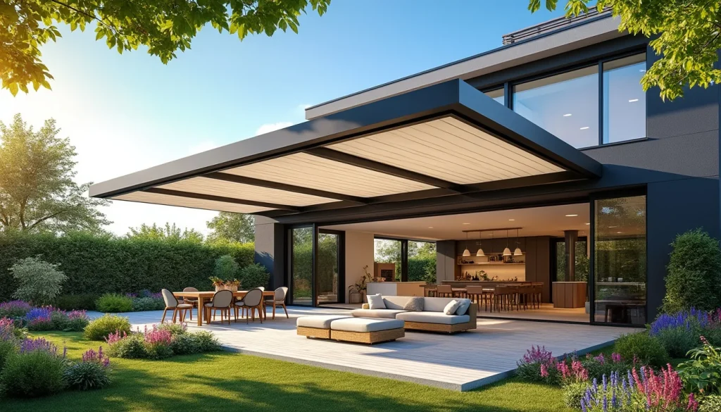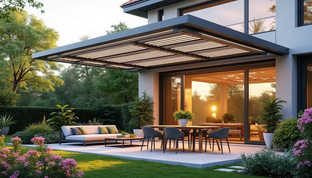 Les lames rétractables vont un cran plus loin : elles s’empilent à une extrémité de la structure pour dégager entièrement le toit. Le résultat est spectaculaire — on passe d’un toit fermé à un ciel ouvert en quelques secondes. Mais cette technologie est plus coûteuse (comptez 20 à 40 % de plus qu’un modèle à lames orientables simples) et implique un mécanisme plus complexe, donc potentiellement plus de maintenance. Le poids des lames empilées exerce aussi une contrainte mécanique supplémentaire sur la traverse d’accueil, ce qui limite les grandes portées sans poteau intermédiaire.